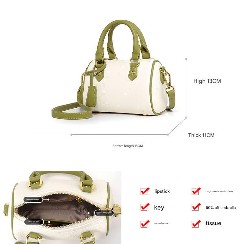 Elevate your everyday style with this chic Boston Pillow Bag, designed for modern women who love a blend of fashion and function. Crafted from premium PU leather, this soft yet structured handbag features a unique contrast color design that adds a touch of sophistication to any outfit. With its compact size (18cm x 11cm x 13cm), it's perfect for carrying your daily essentials while maintaining a sleek, minimalist look.