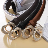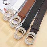 Add a chic and sophisticated touch to any outfit with this stylish women's waist belt, featuring a double round alloy buckle for a trendy yet timeless look. Designed with high-quality imitation leather, this belt is durable, comfortable, and versatile, making it perfect for dresses, skirts, blazers, and more.