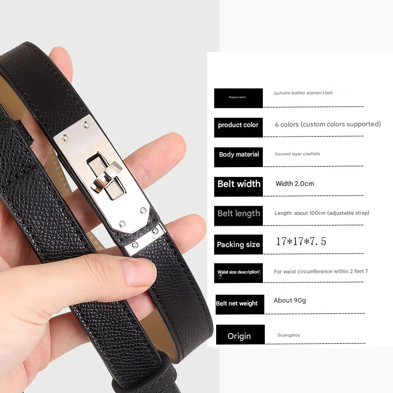 Refine your look with this elegant leather waist belt designed to enhance your shape and style. Featuring a smooth finish and crafted with attention to detail, this versatile accessory includes a polished alloy buckle and convenient snap-button closure for a secure, comfortable fit. The 100cm length and 2–4cm width make it perfect for styling with dresses, tunics, or layered outfits. Whether you're accentuating a waistline or adding a touch of sophistication, this one-size belt delivers everyday elegance with ease. Sourced from Worldwide Suppliers, it offers a chic, minimalist look that complements a variety of wardrobes. A fashionable essential for modern women who love effortless statement pieces.