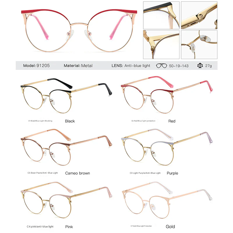 Metal frame: Women's Metal Blue Light Blocking Glasses