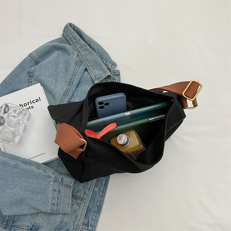 Crafted from durable canvas, this bag is both lightweight and sturdy, offering a comfortable single-strap design for easy carrying. The cover-style closure ensures security while maintaining a clean, minimalist look. Available in green, white, blue, and black, this versatile bag complements any outfit, making it perfect for work, shopping, travel, or casual outings.