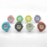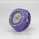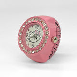 Enhance your style with this elegant women's ring watch, a unique blend of fashion and function. Designed with a 20mm round dial, it features a classic pointer display powered by quartz movement for accurate timekeeping. The stainless steel strap offers durability and a comfortable fit, while the alloy case ensures a lightweight feel. The quartz glass mirror adds a refined touch, making it a standout accessory. This decorative ring watch is perfect for adding a stylish flair to casual and dressy outfits. Available in vibrant colors like white, yellow, red, purple, green, blue, black, and pink, it's a great choice for fashion-forward women. While not waterproof, its chic design makes it an excellent gift or a trendy addition to your jewelry collection.