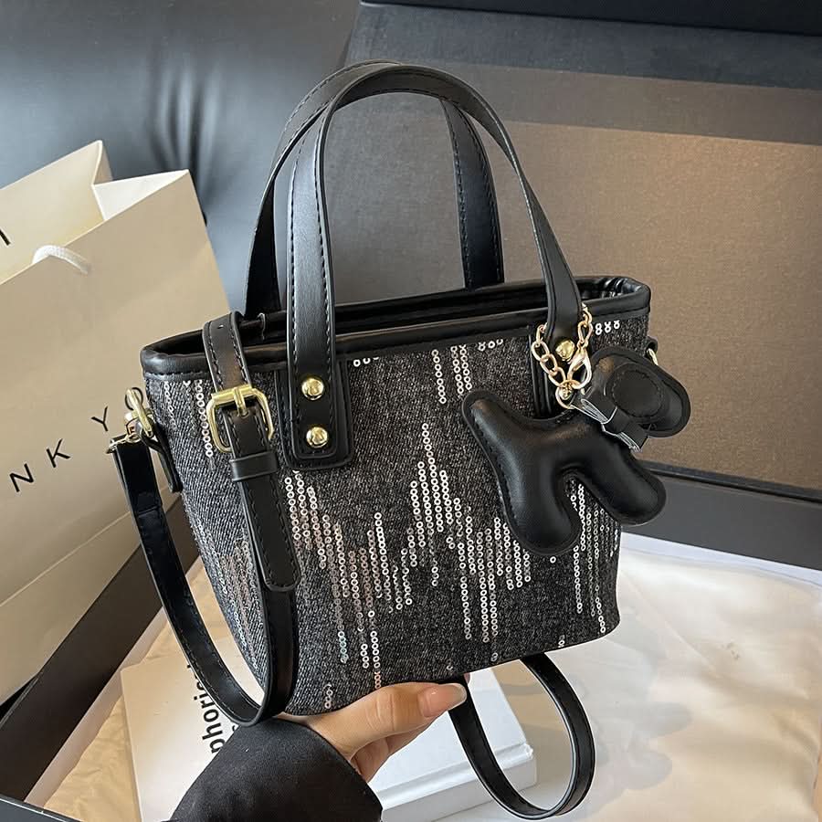 Shimmer in style with this trendy sequin bucket bag, the perfect statement accessory for any occasion. Designed with a compact yet spacious interior, this small PU leather handbag is ideal for carrying your essentials while adding a touch of glamour to your look. The zipper closure keeps your items secure, while the single shoulder strap offers comfortable wear for daily outings or evening events.