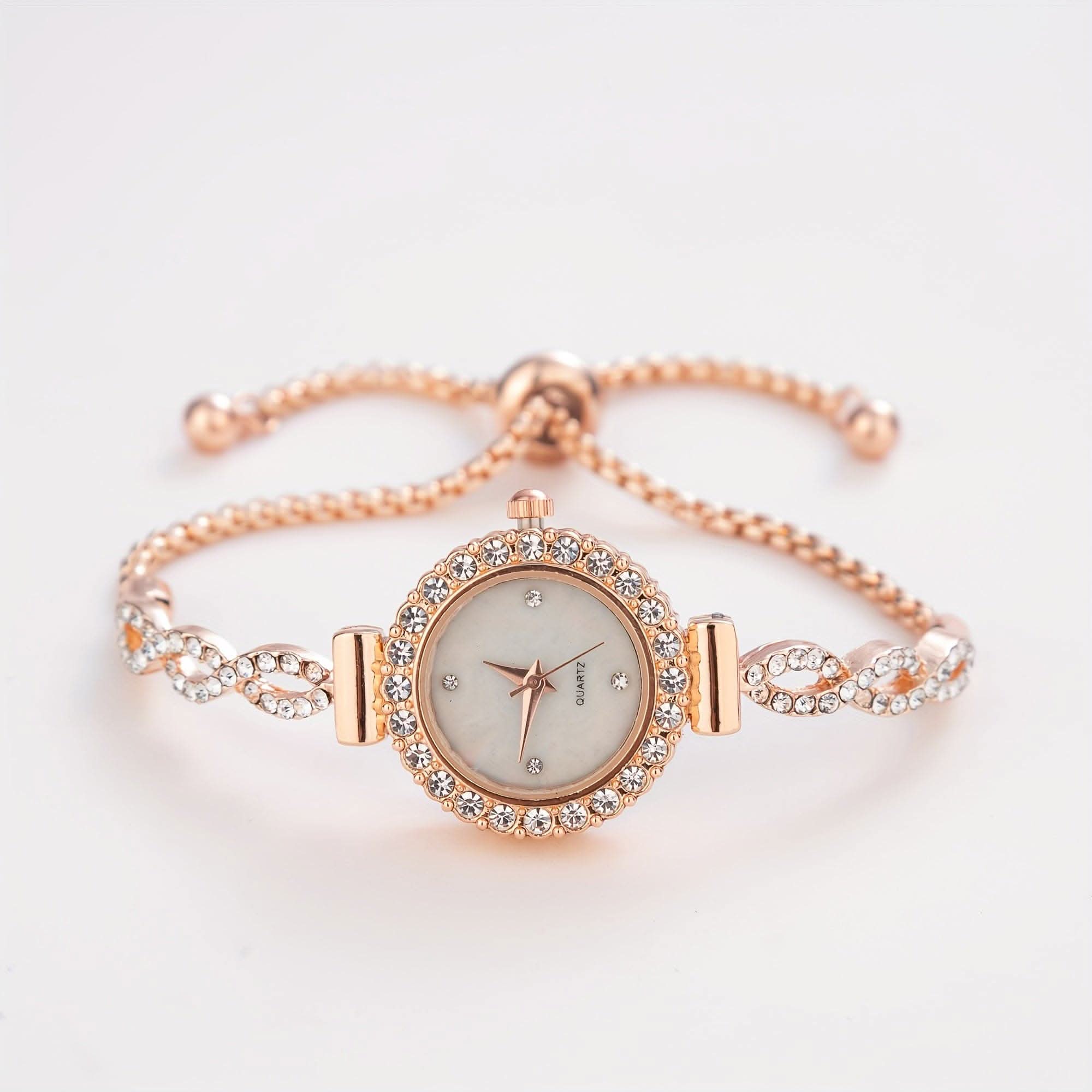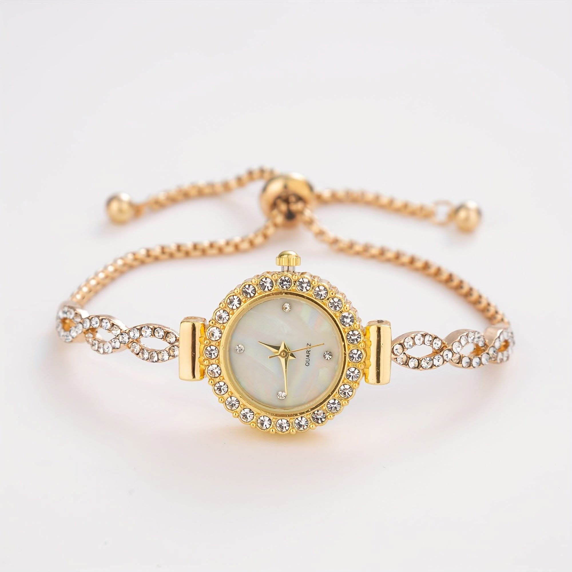 With its stunning rhinestone accents and iridescent dial, this luxury quartz bracelet watch offers a blend of elegance and sophistication. Ideal for adding a touch of glamour to any outfit.