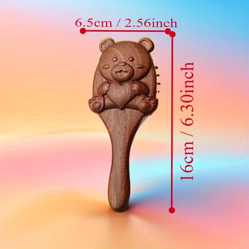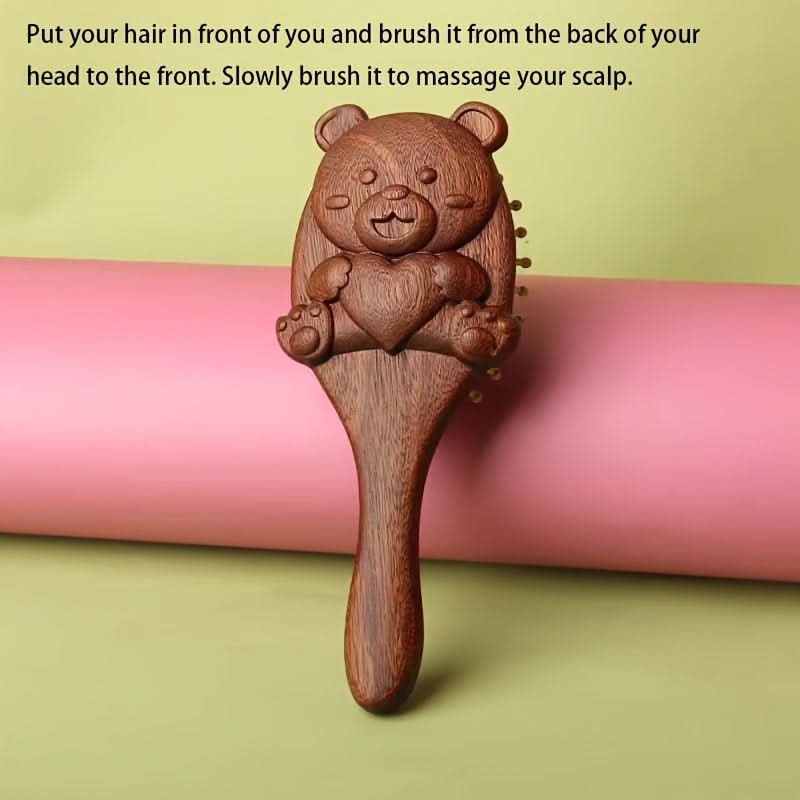 Add elegance and functionality to your hair care routine with the Wooden Bear Air Cushion Hair Brush. Handcrafted from premium sandalwood, this beautifully carved brush combines a stylish design with practical benefits. The soft rubber bristles glide effortlessly through normal hair, gently detangling while reducing frizz for a smooth, polished look.