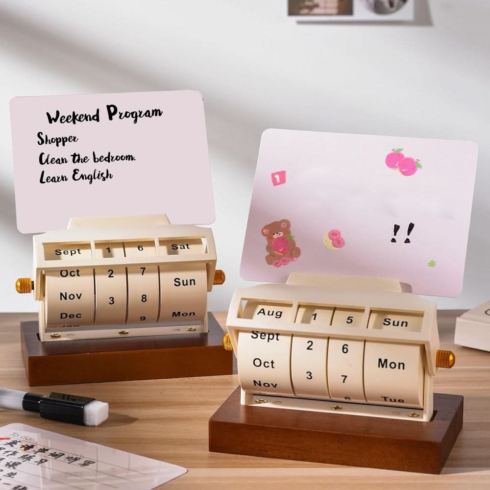 Stay organized and add a vintage charm to your workspace with this wooden desktop calendar. Featuring a rotating block design, this creative daily planner combines functionality and style, making it a standout desk accessory. The calendar comes with a memo pad and a wipe-clean pen, allowing you to jot down notes, reminders, or tasks effortlessly. Crafted from durable wood, it boasts a timeless aesthetic that complements both home and office decor. Perfect as a festive gift idea or a practical addition to your desk, this calendar helps you keep track of dates while doubling as a stylish organizer. Its compact design ensures it fits neatly on any desk, while its eco-friendly, reusable nature adds a sustainable touch to your planning routine. Upgrade your productivity with this charming and practical desk companion.