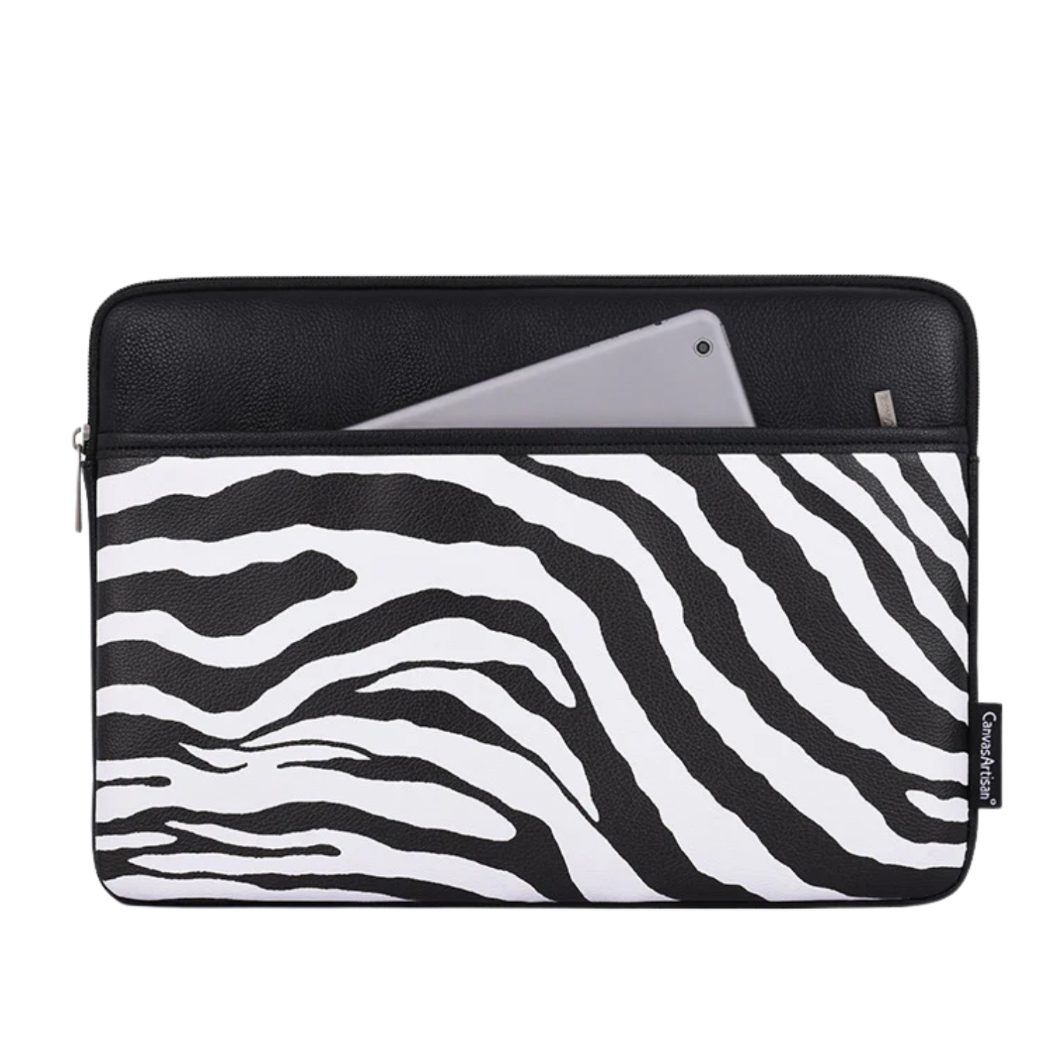 Add bold style and everyday protection to your tech gear with this Zebra Print PU Leather Laptop Sleeve. Designed to fit laptops from 11 to 16 inches, it features a striking black and white zebra pattern that stands out while offering practical functionality. The waterproof and wear-resistant PU leather exterior shields your device from spills and scratches, while the shock-resistant padding cushions it from bumps and knocks.